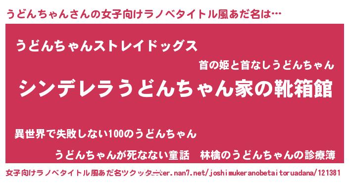 | 男性向けラノベタイトル風あだ名 | 『冴えないうどんちゃんの育てかた』 |