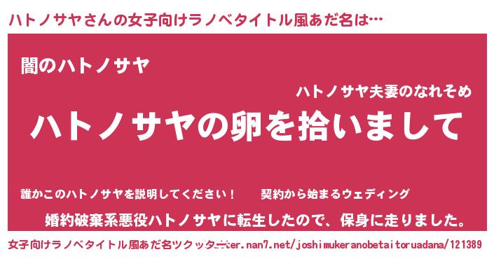| 胡散臭い通販商品みたいなあだ名 | 『伝統あるサプリメント…その名も「ハトノサヤ」』 |