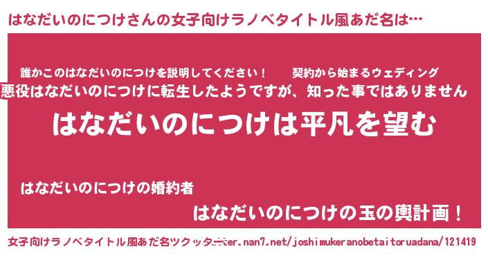 | 胡散臭い通販商品みたいなあだ名 | 『信頼と実績のサプリメント…その名も「はなだいのにつけ」』 |