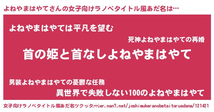 | 意味不明あだ名 | 『とにかく怪しいよねやまはやて』 |