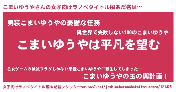 | 男性向けラノベタイトル風あだ名 | 『ダンジョンにこまいゆうやを求めるのは間違っているだろうか』 |