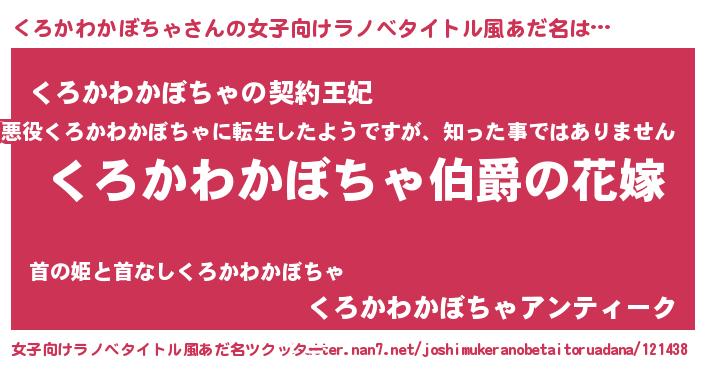 | 男性向けラノベタイトル風あだ名 | 『やはりくろかわかぼちゃの青春ラブコメはまちがっている 』 |