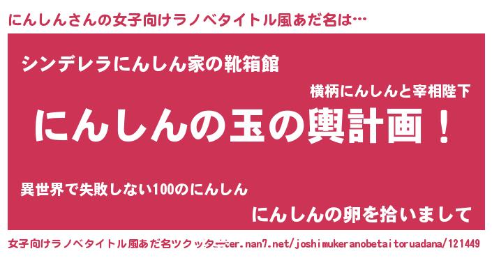 | 胡散臭い通販商品みたいなあだ名 | 『全米が絶賛したサプリメント…その名も「にんしん」』 |