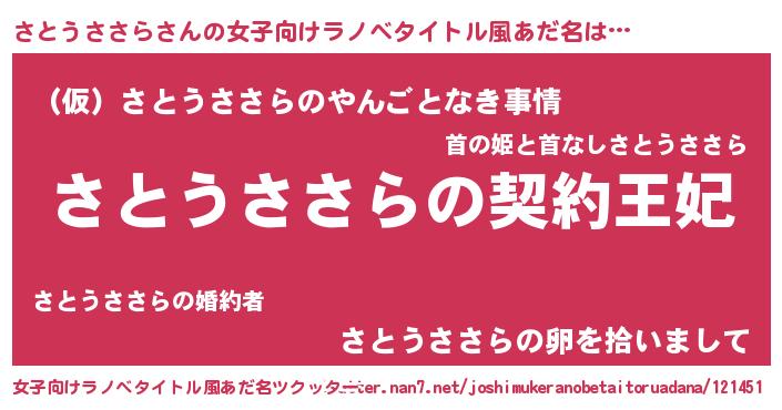| 胡散臭い通販商品みたいなあだ名 | 『来世でも幸せになれる健康食品…その名も「さとうささら」』 |