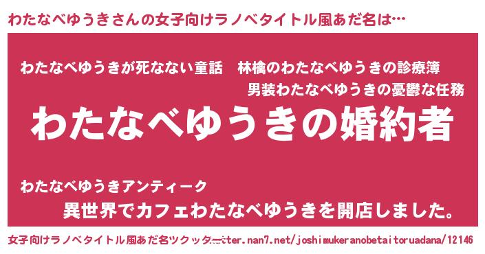 | ファンタジー風あだ名 | 『エターナルワタナベユウキー』 |