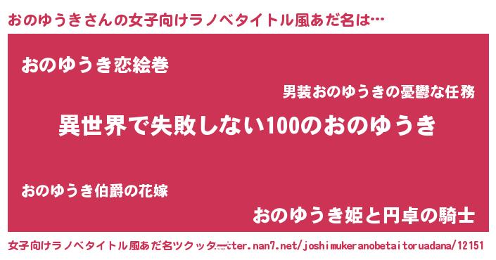 | 男性向けラノベタイトル風あだ名 | 『おのゆうきという概念が存在しない退屈な世界 』 |