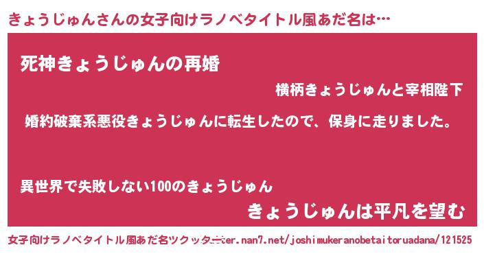| 男性向けラノベタイトル風あだ名 | 『キョウジュンスレイヤー』 |