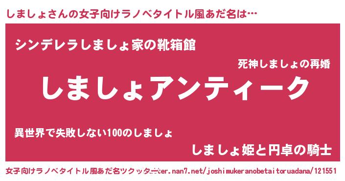 | 胡散臭い通販商品みたいなあだ名 | 『テレビで話題の冬虫夏草…その名も「しましょ」』 |