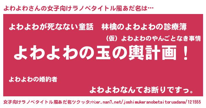| ヒーロー風カッコイイあだ名 | 『仮面ヨワダー』『超時空戦士ヨワヨワ』 |