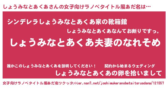 | 欧米人風あだ名 | 『ダニエルしょうみなとあくあ』 |