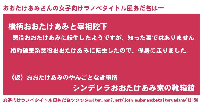 | 男性向けラノベタイトル風あだ名 | 『転生したらおおたけあみだった件』 |