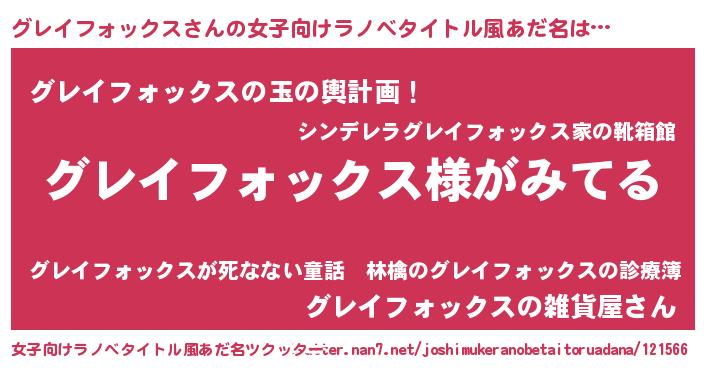 | 男性向けラノベタイトル風あだ名 | 『グレイフォックスの嫁は女の子じゃないと思った?』 |