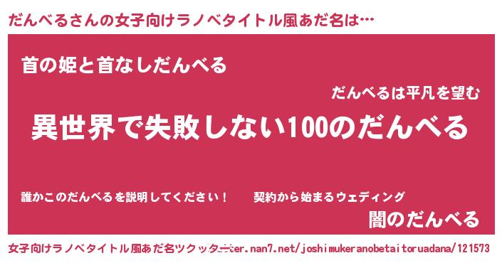 | 男性向けラノベタイトル風あだ名 | 『だんべるという概念が存在しない退屈な世界 』 |