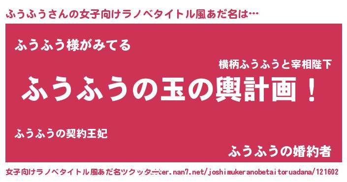 | ヒーロー風カッコイイあだ名 | 『幻影騎士フウ』『ウルトラふうふうマン』 |