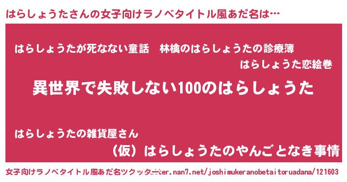 | 男性向けラノベタイトル風あだ名 | 『はらしょうたという概念が存在しない退屈な世界 』 |