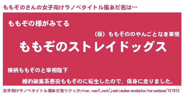 | 男性向けラノベタイトル風あだ名 | 『Re:ももぞのから始める異世界生活』 |