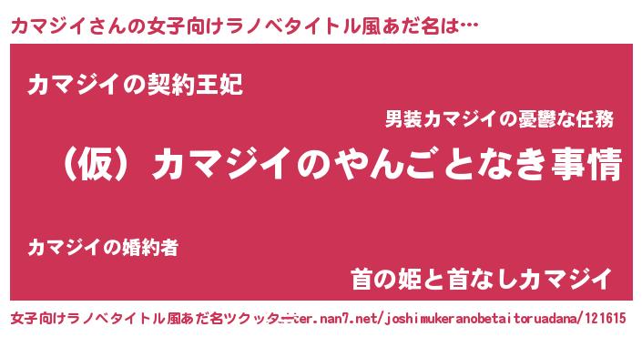 | ファンタジー風あだ名 | 『カマフェル』『カマディッシュ』 |