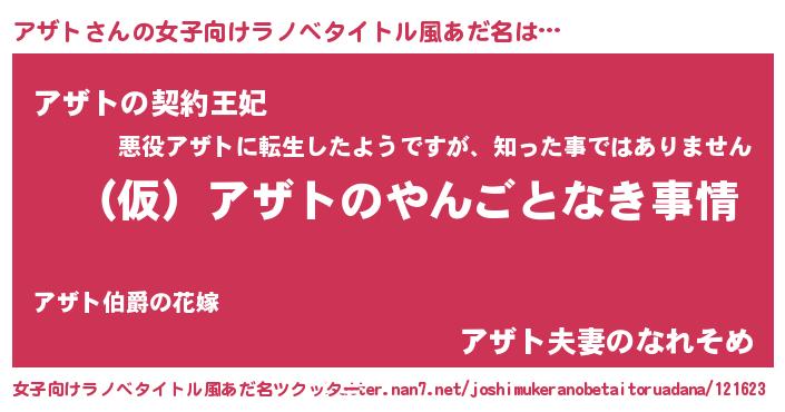 | 胡散臭い通販商品みたいなあだ名 | 『必ず成功する水晶球…その名も「アザト」』 |