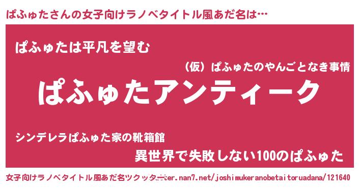 | 男性向けラノベタイトル風あだ名 | 『魔法科高校のぱふゅた』 |