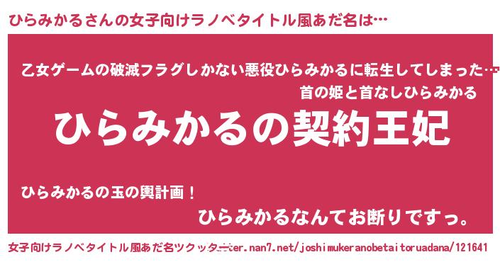 | ファンタジー風あだ名 | 『ヒラディッシュ』『ヴァルヒラーナ』 |