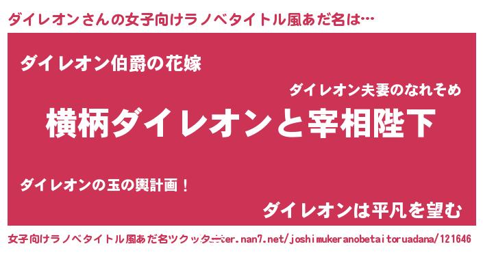 | 男性向けラノベタイトル風あだ名 | 『ダイレオンに滅ぼされるだけの簡単なお仕事です』 |