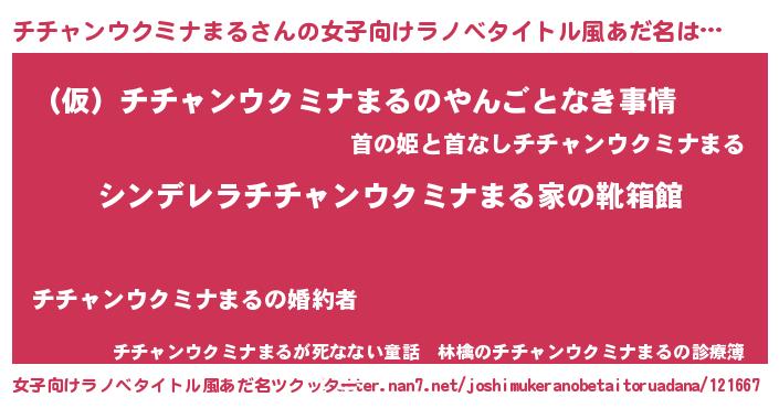 | 胡散臭い通販商品みたいなあだ名 | 『モテモテ間違いなし水晶球…その名も「チチャンウクミナまる」』 |