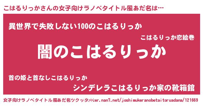 | 男性向けラノベタイトル風あだ名 | 『Re:こはるりっかから始める異世界生活』 |