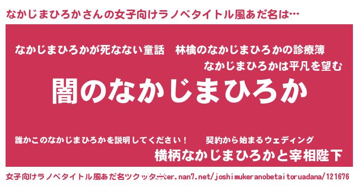 | 男性向けラノベタイトル風あだ名 | 『Re:なかじまひろかから始める異世界生活』 |