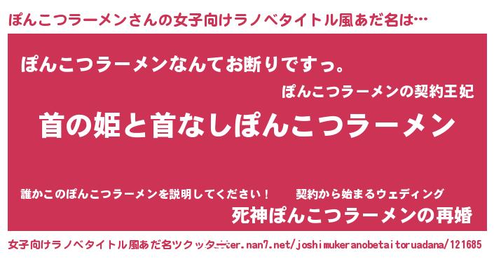 | 男性向けラノベタイトル風あだ名 | 『はたらくぽんこつラーメンさま!』 |