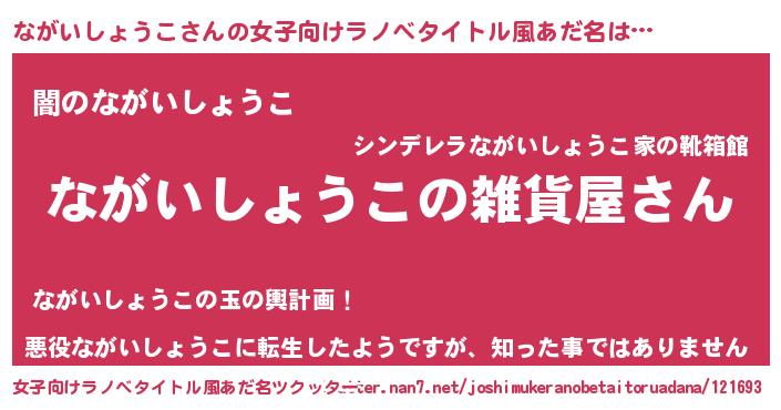 | 男性向けラノベタイトル風あだ名 | 『やはりながいしょうこの青春ラブコメはまちがっている 』 |