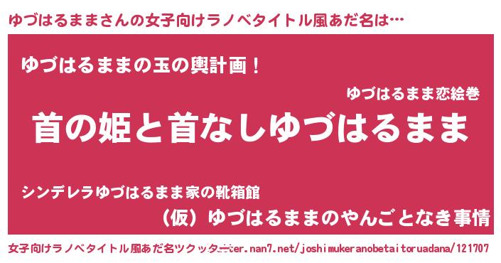 | 男性向けラノベタイトル風あだ名 | 『はたらくゆづはるままさま!』 |