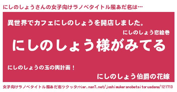 | 胡散臭い通販商品みたいなあだ名 | 『全米が絶賛したサプリメント…その名も「にしのしょう」』 |