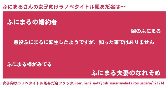 | 男性向けラノベタイトル風あだ名 | 『この素晴らしい世界にふにまるを!』 |