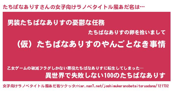 | ヘコむあだ名 | 『たちにー』『たちばなありす(笑)』 |