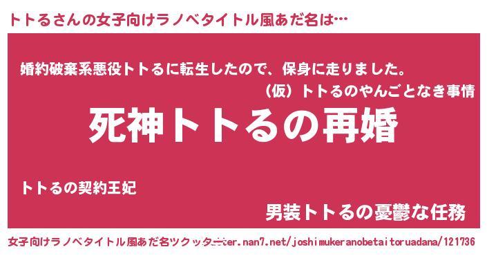 | ヒーロー風カッコイイあだ名 | 『慈愛の使者トトる』『スーパートトル』 |
