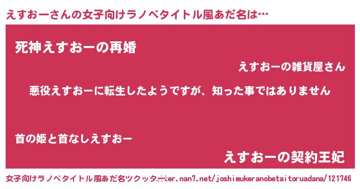 | 男性向けラノベタイトル風あだ名 | 『この素晴らしい世界にえすおーを!』 |