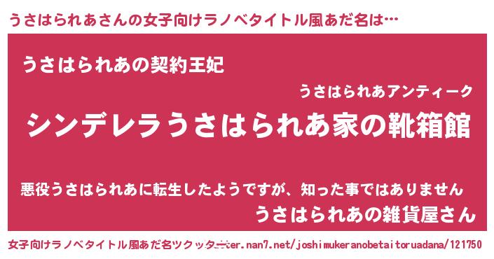 | 胡散臭い通販商品みたいなあだ名 | 『絶対に幸福をもたらす健康食品…その名も「うさはられあ」』 |