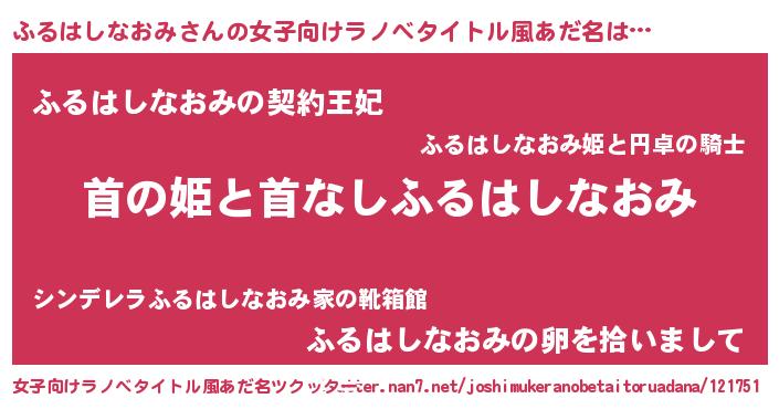 | 男性向けラノベタイトル風あだ名 | 『はたらくふるはしなおみさま!』 |