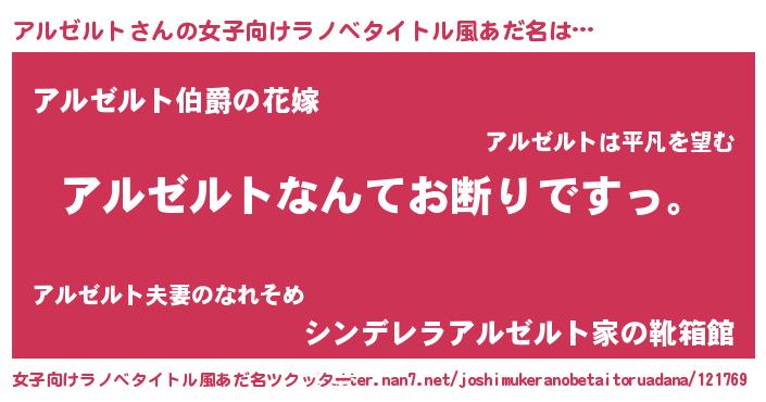 | 意味不明あだ名 | 『自称アルゼルト』 |