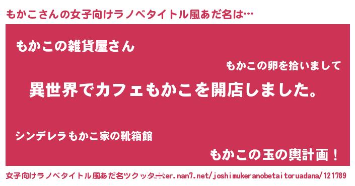 | 胡散臭い通販商品みたいなあだ名 | 『前代未聞の健康食品…その名も「もかこ」』 |