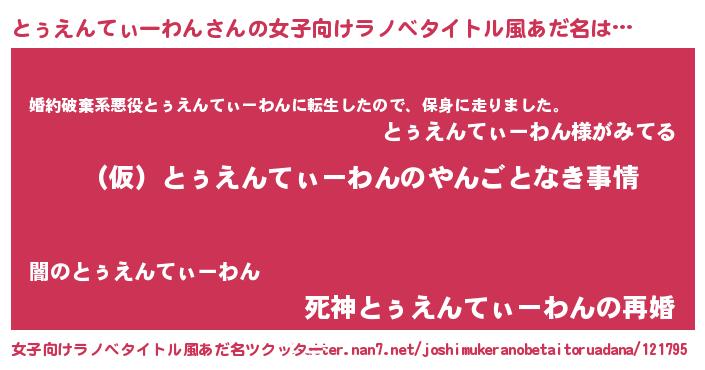 | 胡散臭い通販商品みたいなあだ名 | 『必ず成功するブレスレット…その名も「とぅえんてぃーわん」』 |
