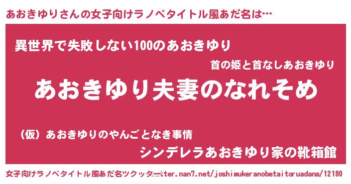 | 男性向けラノベタイトル風あだ名 | 『おまえをオタクにしてやるから、俺をあおきゆりにしてくれ! 』 |