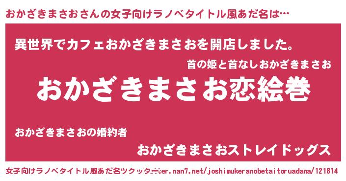 | 男性向けラノベタイトル風あだ名 | 『ノーゲーム・ノーオカザキマサオ』 |