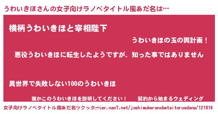 | ヘコむあだ名 | 『うわもー』『うわいきほ(笑)』 |