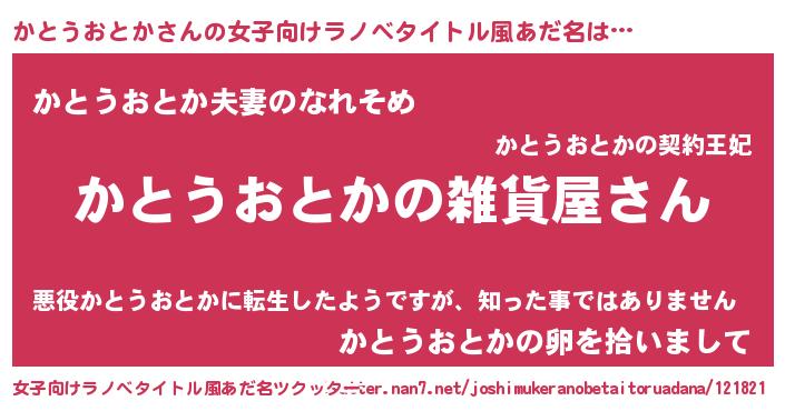| 男性向けラノベタイトル風あだ名 | 『やはりかとうおとかの青春ラブコメはまちがっている 』 |