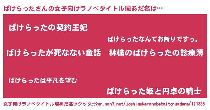| 意味不明あだ名 | 『住所不定無職ばけらった(3歳)』 |