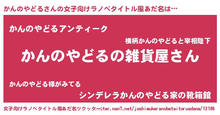 | 男性向けラノベタイトル風あだ名 | 『やはりかんのやどるの青春ラブコメはまちがっている 』 |