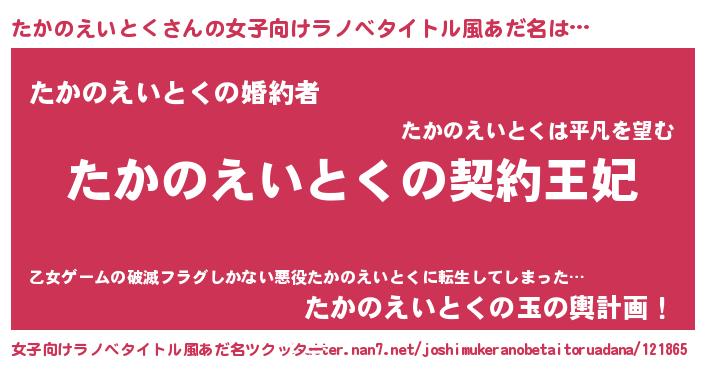 | 男性向けラノベタイトル風あだ名 | 『たかのえいとくという概念が存在しない退屈な世界 』 |