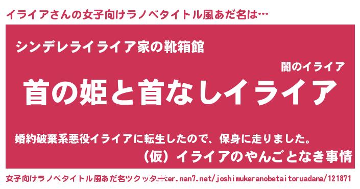 | 胡散臭い通販商品みたいなあだ名 | 『必ず成功する水晶球…その名も「イライア」』 |