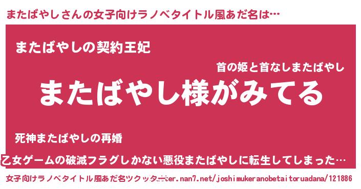 | 男性向けラノベタイトル風あだ名 | 『またばやしの嫁は女の子じゃないと思った?』 |
